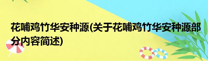 花哺鸡竹华安种源(关于花哺鸡竹华安种源部分内容简述)