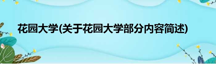 导读 大家好,今天小方来说说一篇关于花园大学,关于花园大学部分内容简述的文章,那么现在就为大家来简单介绍下,希望对各位小伙伴们有所帮助。