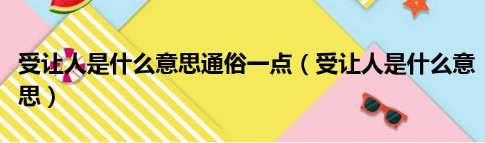 导读 大家好,小活来为大家解答以上的问题。受让人是什么意思通俗一点,受让人是什么意思这个很多人还不知道,现在让我们一起来看看吧!1、受让人