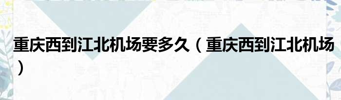 重庆西到江北机场要多久(重庆西到江北机场)