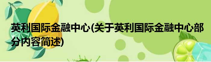 导读 大家好,今天小方来说说一篇关于英利国际金融中心,关于英利国际金融中心部分内容简述的文章,那么现在就为大家来简单介绍下,希望对各位小