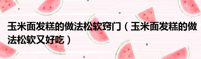 玉米面发糕的做法松软窍门(玉米面发糕的做法松软又好吃)