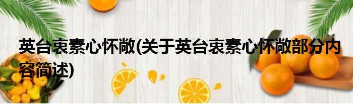 英台衷素心怀敞(关于英台衷素心怀敞部分内容简述)