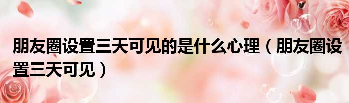 朋友圈设置三天可见的是什么心理(朋友圈设置三天可见)