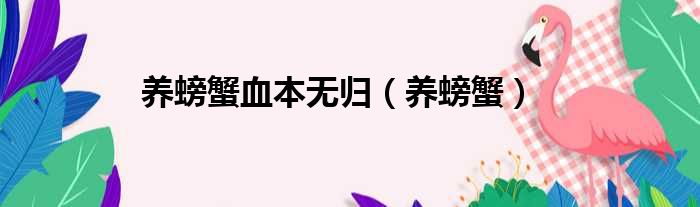 大家好,小活来为大家解答以上问题。养螃蟹血本无归,养螃蟹很多人还不知道,现在让我们一起来看看吧!