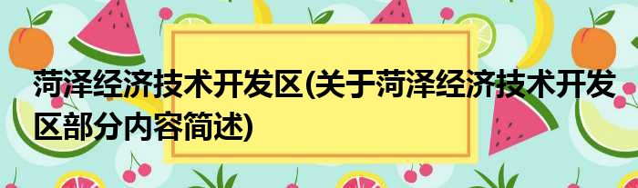 菏泽经济技术开发区(关于菏泽经济技术开发区部分内容简述)