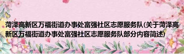 菏泽高新区万福街道办事处富强社区志愿服务队(关于菏泽高新区万福街道办事处富强社区志愿服务队部分内容简述)