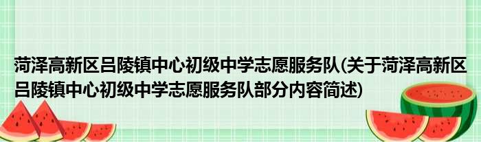 菏泽高新区吕陵镇中心初级中学志愿服务队(关于菏泽高新区吕陵镇中心初级中学志愿服务队部分内容简述)