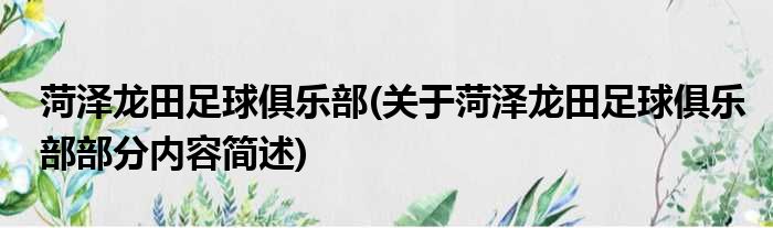 菏泽龙田足球俱乐部(关于菏泽龙田足球俱乐部部分内容简述)