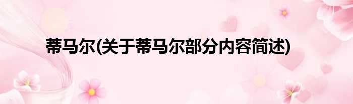 导读 大家好,今天小方来说说一篇关于蒂马尔,关于蒂马尔部分内容简述的文章,那么现在就为大家来简单介绍下,希望对各位小伙伴们有所帮助。