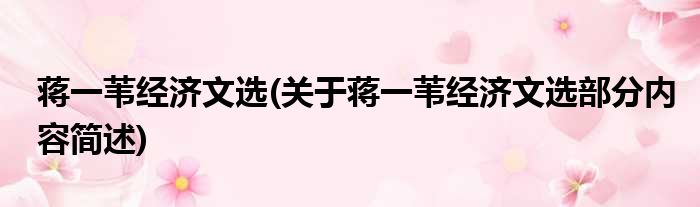 导读 大家好,今天小方来说说一篇关于蒋一苇经济文选,关于蒋一苇经济文选部分内容简述的文章,那么现在就为大家来简单介绍下,希望对各位小伙伴
