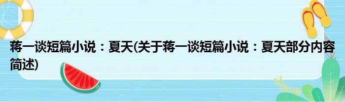 蒋一谈短篇小说:夏天(关于蒋一谈短篇小说:夏天部分内容简述)