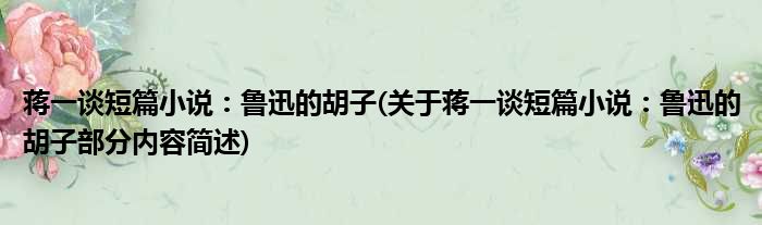 蒋一谈短篇小说:鲁迅的胡子(关于蒋一谈短篇小说:鲁迅的胡子部分内容简述)