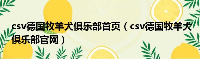 csv德国牧羊犬俱乐部首页(csv德国牧羊犬俱乐部官网)