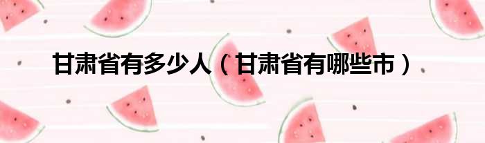 甘肃省有多少人(甘肃省有哪些市)