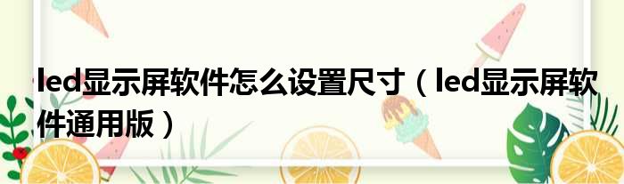 导读 大家好,小活来为大家解答以上的问题。led显示屏软件怎么设置尺寸,led显示屏软件通用版这个很多人还不知道,现在让我们一起来看看吧!1、LED