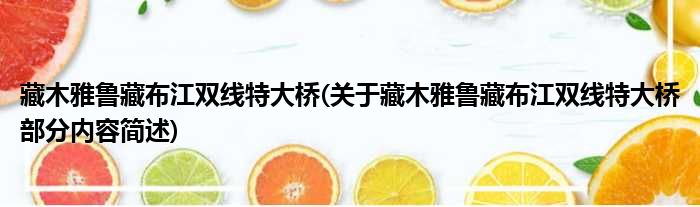 藏木雅鲁藏布江双线特大桥(关于藏木雅鲁藏布江双线特大桥部分内容简述)