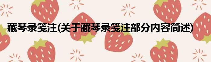 藏琴录笺注(关于藏琴录笺注部分内容简述)