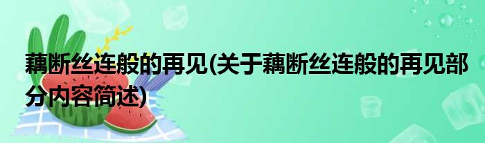藕断丝连般的再见(关于藕断丝连般的再见部分内容简述)