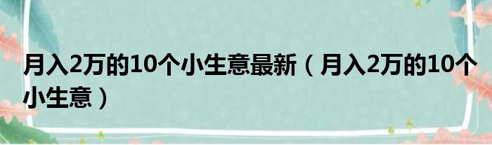 月入2万的10个小生意最新(月入2万的10个小生意)