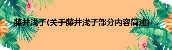 大家好,今天小方来说说一篇关于藤井浅子,关于藤井浅子部分内容简述的文章,那么现在就为大家来简单介绍下,希望对各位小伙伴们有所帮助。