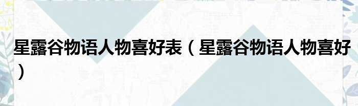 星露谷物语人物喜好表(星露谷物语人物喜好)
