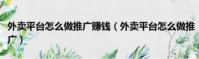外卖平台怎么做推广赚钱(外卖平台怎么做推广)