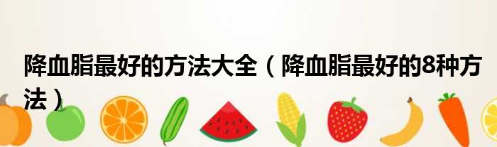 降血脂最好的方法大全(降血脂最好的8种方法)