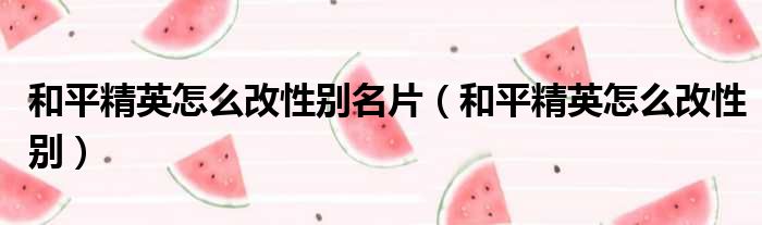 和平精英怎么改性别名片(和平精英怎么改性别)