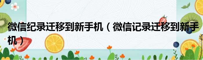 微信纪录迁移到新手机(微信记录迁移到新手机)