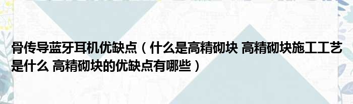 骨传导蓝牙耳机优缺点(什么是高精砌块 高精砌块施工工艺是什么 高精砌块的优缺点有哪些)