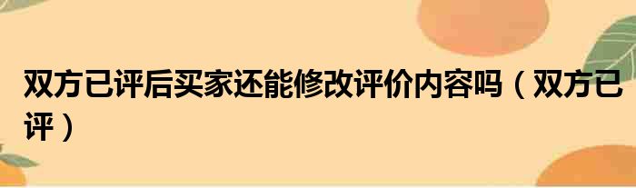 大家好,小东方来为大家解答以上的问题。双方已评后买家还能修改评价内容吗,双方已评这个很多人还不知道,现在让我们一起来看看吧!