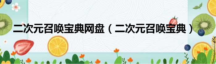 大家好,小东方来为大家解答以上的问题。二次元召唤宝典网盘,二次元召唤宝典这个很多人还不知道,现在让我们一起来看看吧!