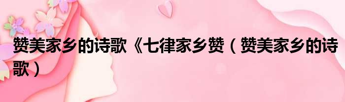 赞美家乡的诗歌《七律家乡赞(赞美家乡的诗歌)