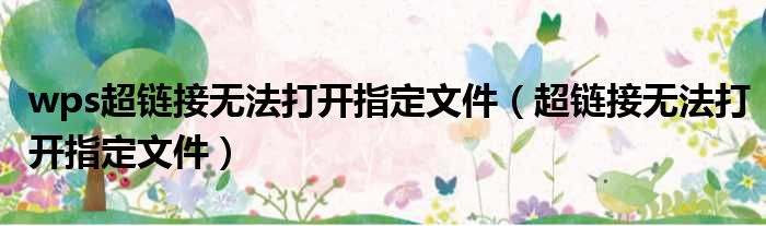 wps超链接无法打开指定文件(超链接无法打开指定文件)