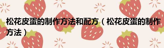 松花皮蛋的制作方法和配方(松花皮蛋的制作方法)