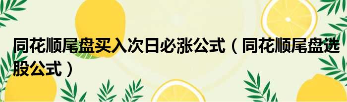 导读 大家好,小东方来为大家解答以上的问题。同花顺尾盘买入次日必涨公式,同花顺尾盘选股公式这个很多人还不知道,现在让我们一起来看看吧!1、