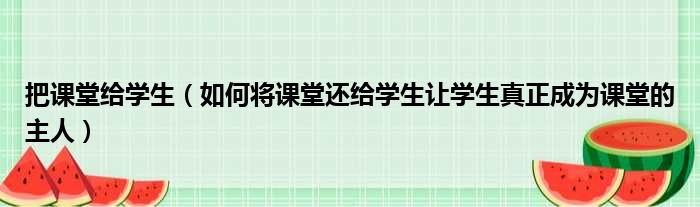 把课堂给学生(如何将课堂还给学生让学生真正成为课堂的主人)