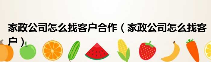 家政公司怎么找客户合作(家政公司怎么找客户)