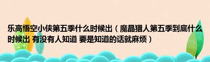 导读 大家好,小东方来为大家解答以上的问题。乐高悟空小侠第五季什么时候出,魔晶猎人第五季到底什么时候出 有没有人知道 要是知道的话就麻烦