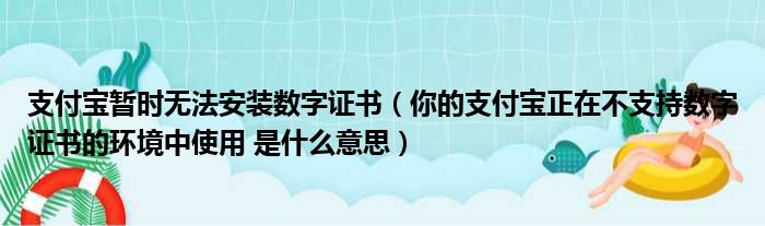 支付宝暂时无法安装数字证书(你的支付宝正在不支持数字证书的环境中使用 是什么意思)