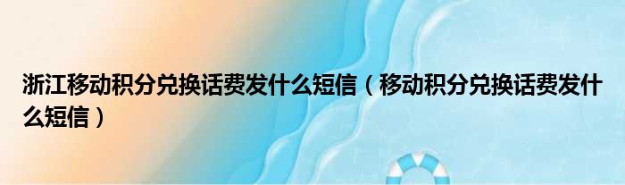 浙江移动积分兑换话费发什么短信(移动积分兑换话费发什么短信)