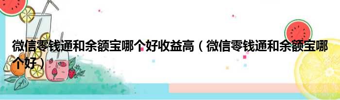 微信零钱通和余额宝哪个好收益高(微信零钱通和余额宝哪个好)