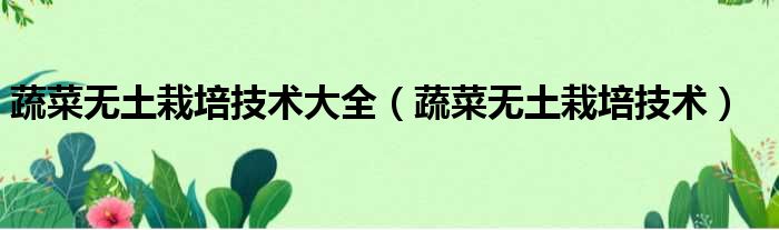 蔬菜无土栽培技术大全(蔬菜无土栽培技术)