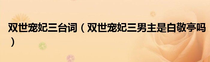 大家好,小东方来为大家解答以上的问题。双世宠妃三台词,双世宠妃三男主是白敬亭吗这个很多人还不知道,现在让我们一起来看看吧!