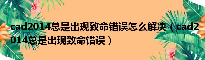 cad2014总是出现致命错误怎么解决(cad2014总是出现致命错误)