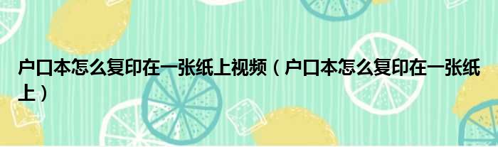 户口本怎么复印在一张纸上视频(户口本怎么复印在一张纸上)