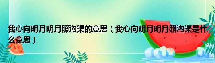 我心向明月明月照沟渠的意思(我心向明月明月照沟渠是什么意思)