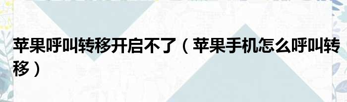 苹果呼叫转移开启不了(苹果手机怎么呼叫转移)