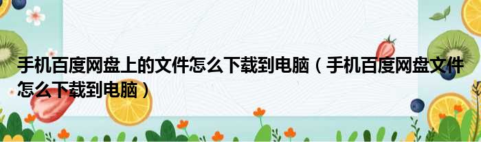 手机百度网盘上的文件怎么下载到电脑(手机百度网盘文件怎么下载到电脑)